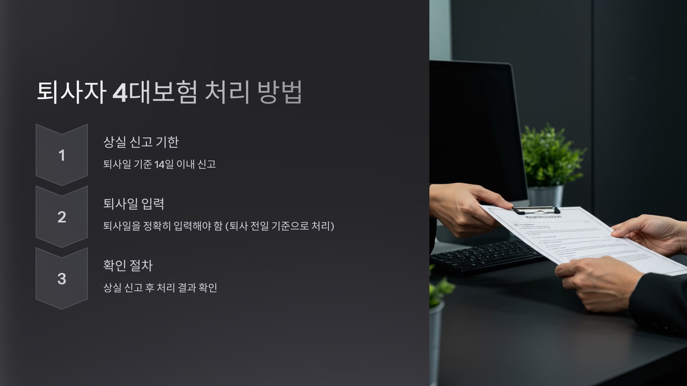 4대보험 상실 신고: 퇴사일 기준 14일 이내 신고